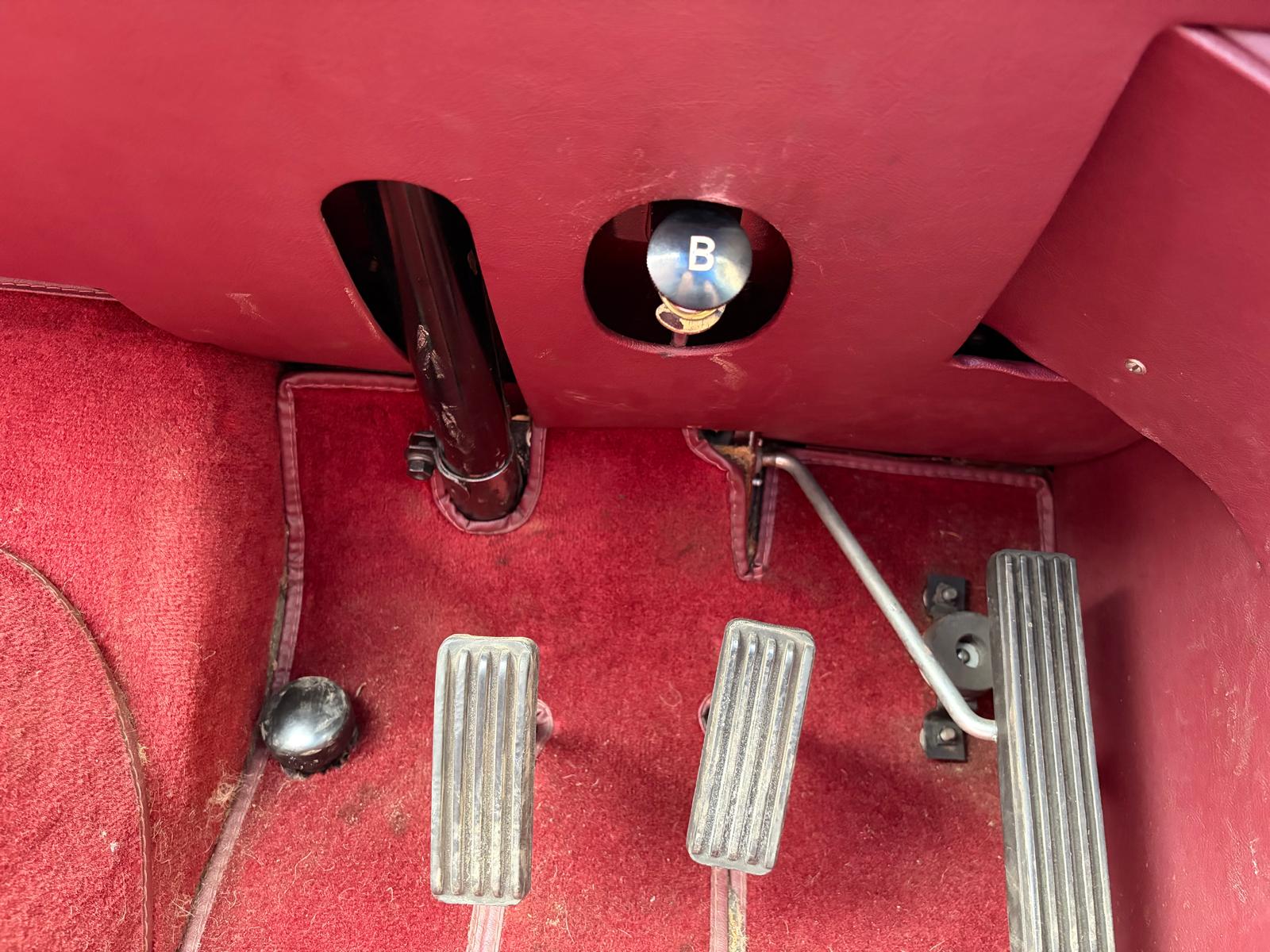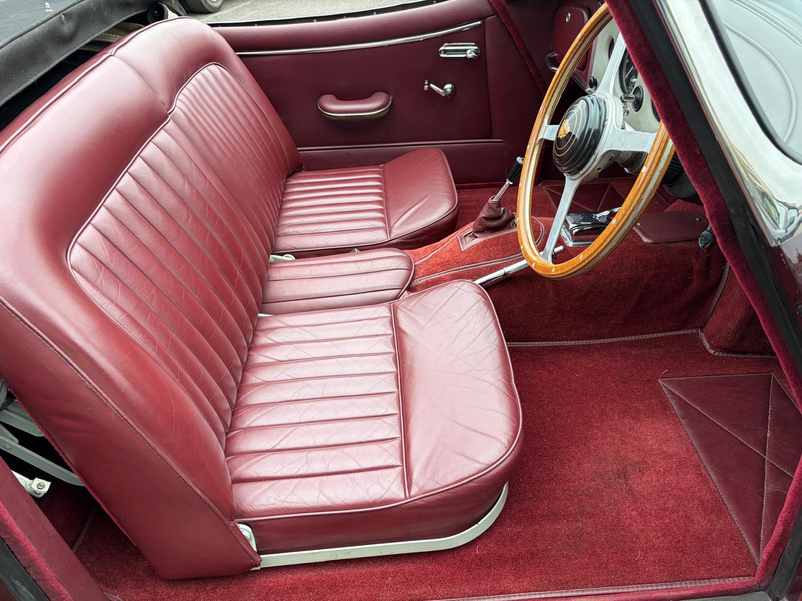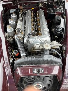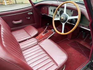 On the road the engine is very throaty, responsive and clearly has all of the 250bhp S sporting heritage still under the bonnet. Oil pressure is good and the triple 2” SU’s feed fuel to make the car a veritable rocketship with a get up and go that will surprise most modern cars on the road today. Gear change is slick and the overdrive works perfectly. There is power assisted steering which is excellent. The car has a Kenlowe fan which together with the bonnet louvres will surely keep the car cool on the hottest summer days. The S has excellent road manners and is a thrilling car to drive. We will service this car for sale but the vital signs are that this car will give many many years of fun with minimal service expenditure