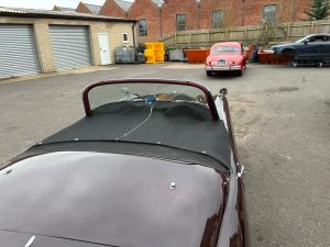 In the cabin the seats are as new as are the carpets and all the trim fittings. Pretty much unmarked interior with a heater and all the dials working as they should. The soft top is in excellent condition and there is a tonneau cover which will be very useful and prevent erection of the hood except on the wettest of days.