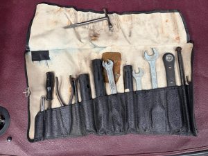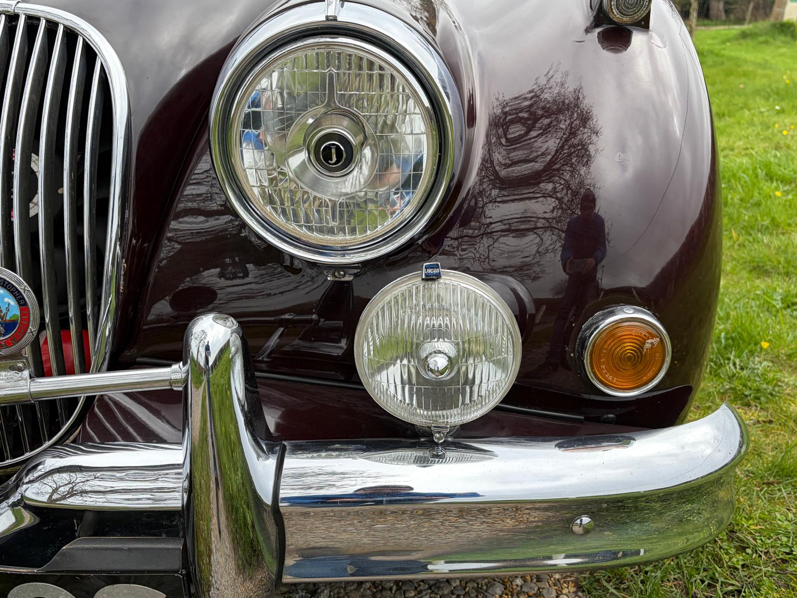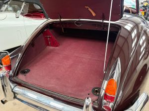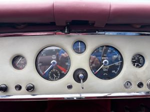 The car today remains a really outstanding car and whilst there is little history it is clear the car has been well looked after. Bodily very sound with excellent door gaps and very straight panels it is clear to see the restoration back in the late 1980’s was done to an exhaustive standard. There are a few age related marks but nothing other than age related marks that show how well the car was restored. As stated this is a matching numbers car with the chassis, cylinder block and cylinder head all corresponding with the Heritage Certificate. Presented in a striking dark burgundy with matching leather trim off set by perfect chrome the car does look very very nice. The car was restored with matching bespoke leather luggage and this is with the car today as is a complete tool roll. Additionally visually the car benefits from a beautifully louvered bonnet to give a real sporting appearance