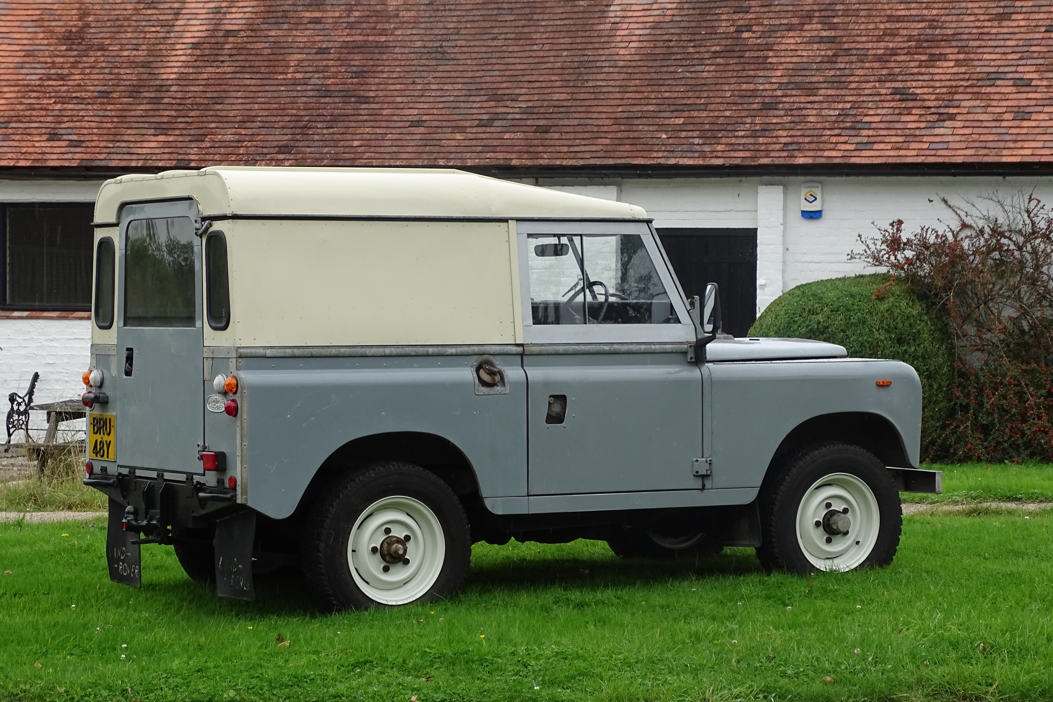 This particular Series III 88″ was first registered on 12th of January 1983. The original registration BRU 48Y is pleasingly still retained. Presented in Mid Grey with black seats and various comforts including a very good heater. The most recent owner acquired the car in August 2017 to become only the 5th owner, and believes it was first the property of the BBC and used on outbound assignment work before being sold on to private ownership. The recorded mileage is just shy of 86,000 and is supported by a comprehensive MOT history with certificates back to 1993 and tax discs back to 1989. Despite being driven for little over 1,000 miles around his Sussex estate since 2017, the Land Rover has been maintained regardless of cost and this is supported by nearly £4,000 of service work since acquisition in August 2017. Offered with a detailed BMI Heritage Certificate, MOT history and numerous service invoices evidencing the present condition of this classic Land Rover.